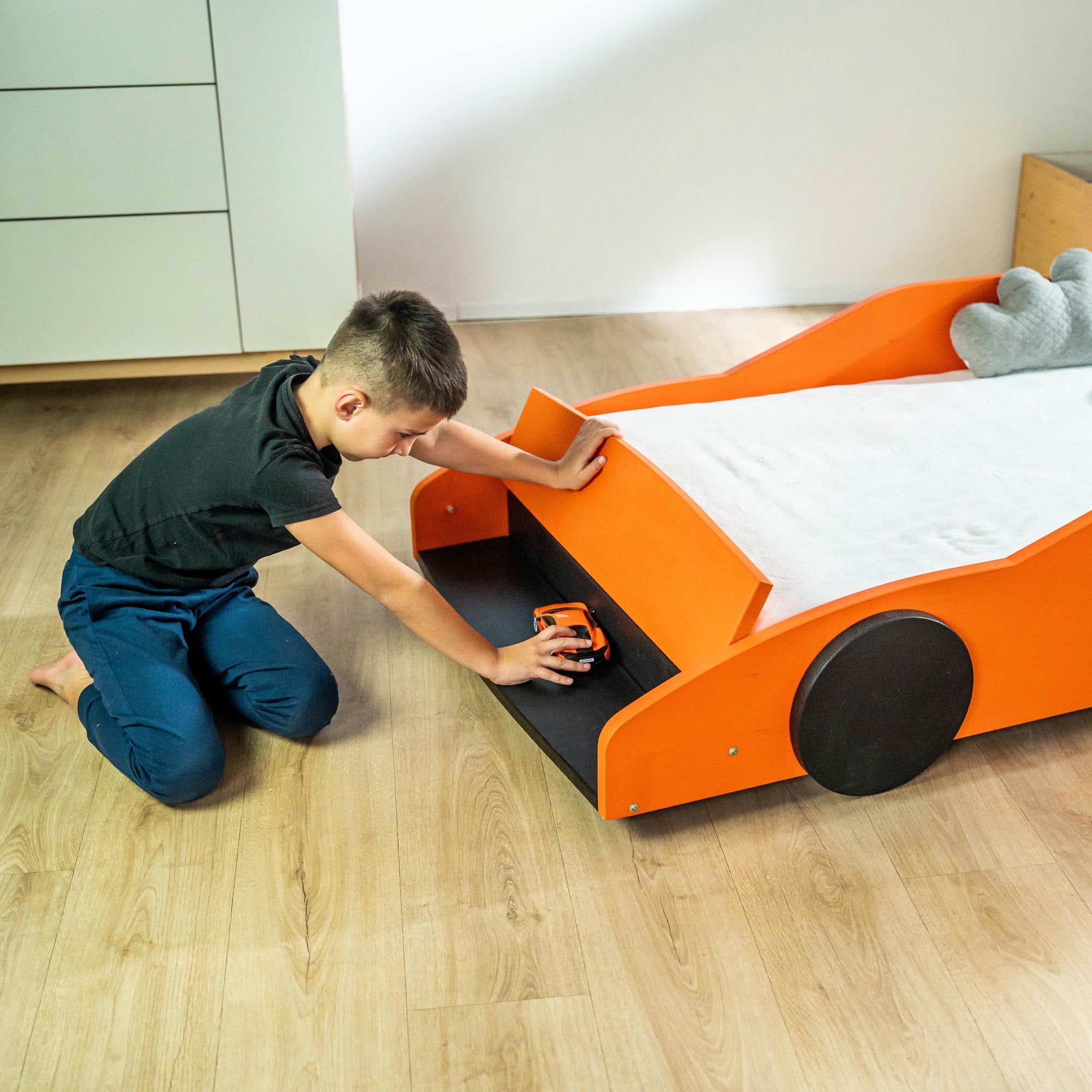 Das Kinderbett BusyKids BLAZE ist ein auffälliges und stilvolles Modell in Form eines Rennwagens, das das Kinderzimmer in eine echte Rennstrecke für kleine Fahrer verwandelt. Das lebendige und moderne Design regt die Fantasie des Kindes an und macht jeden Abend vor dem Schlafengehen zu einem spannenden und unterhaltsamen Erlebnis.