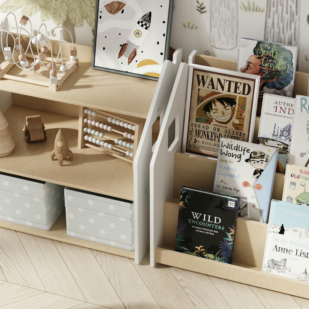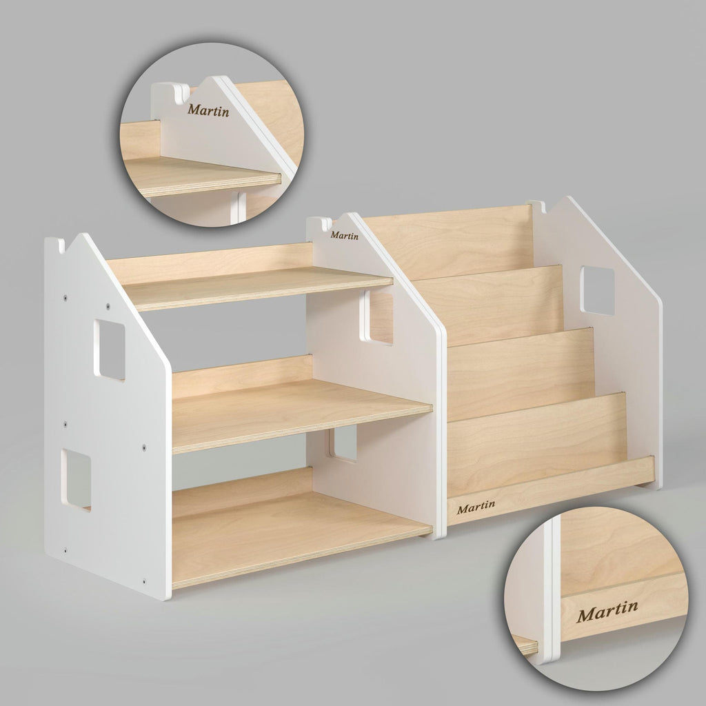 Das Set von Bücher- und Spielzeugregal ist perfekt für die wissbegierigen Kinder gedacht. Dank seines minimalistischen Designs passt das Set in fast jede Einrichtung. Komplettieren Sie das Kinderzimmer mit diesen schönen Möbelstücken.