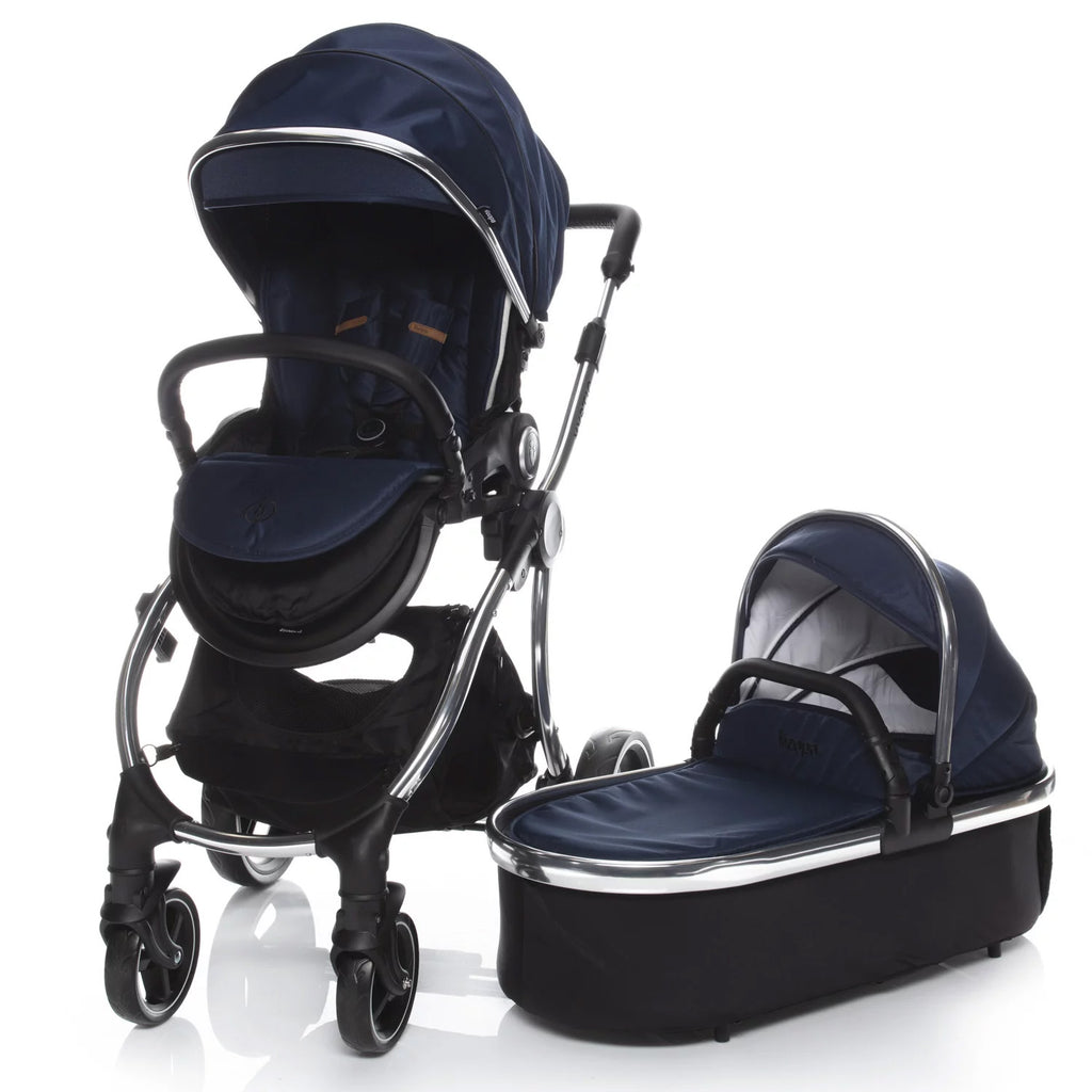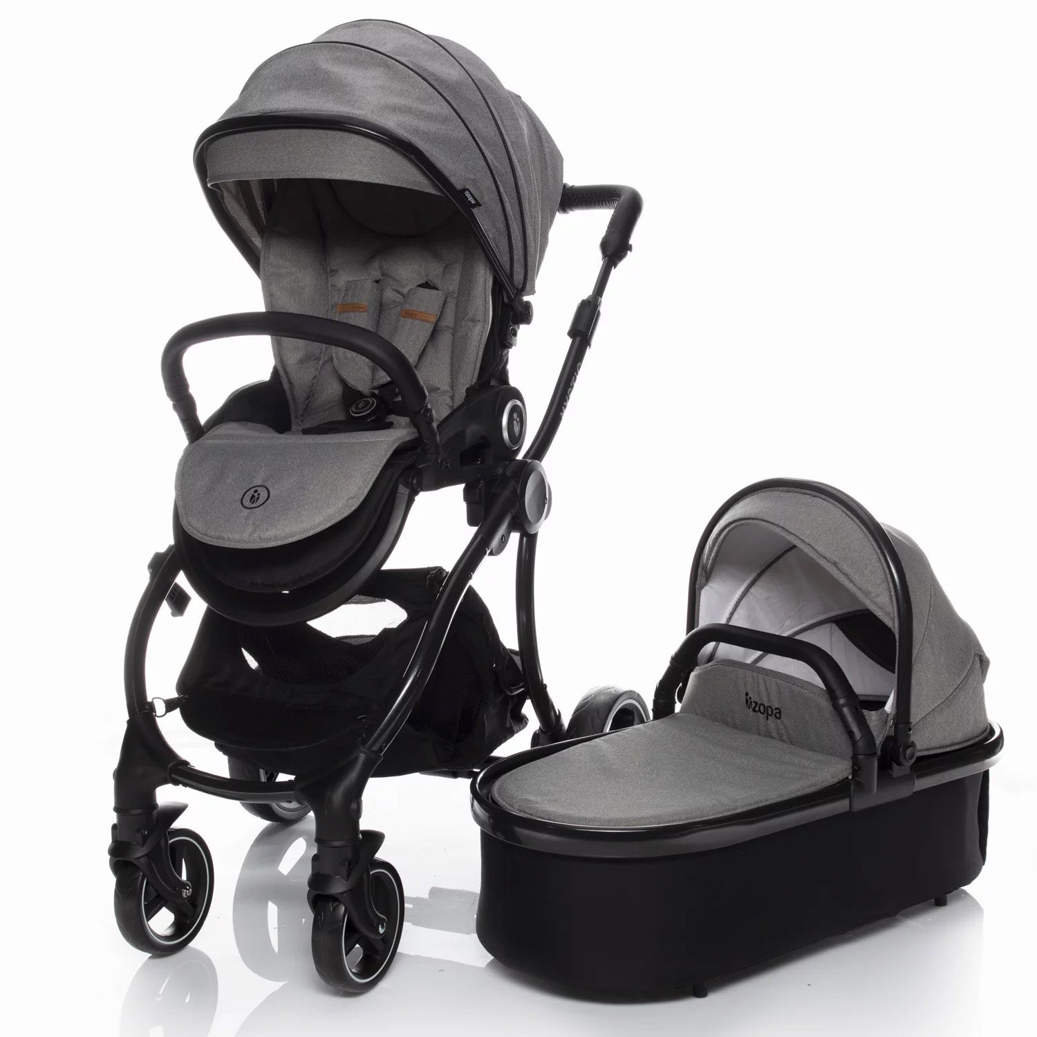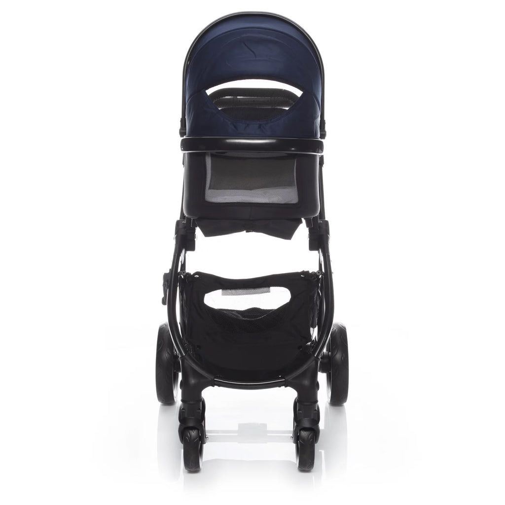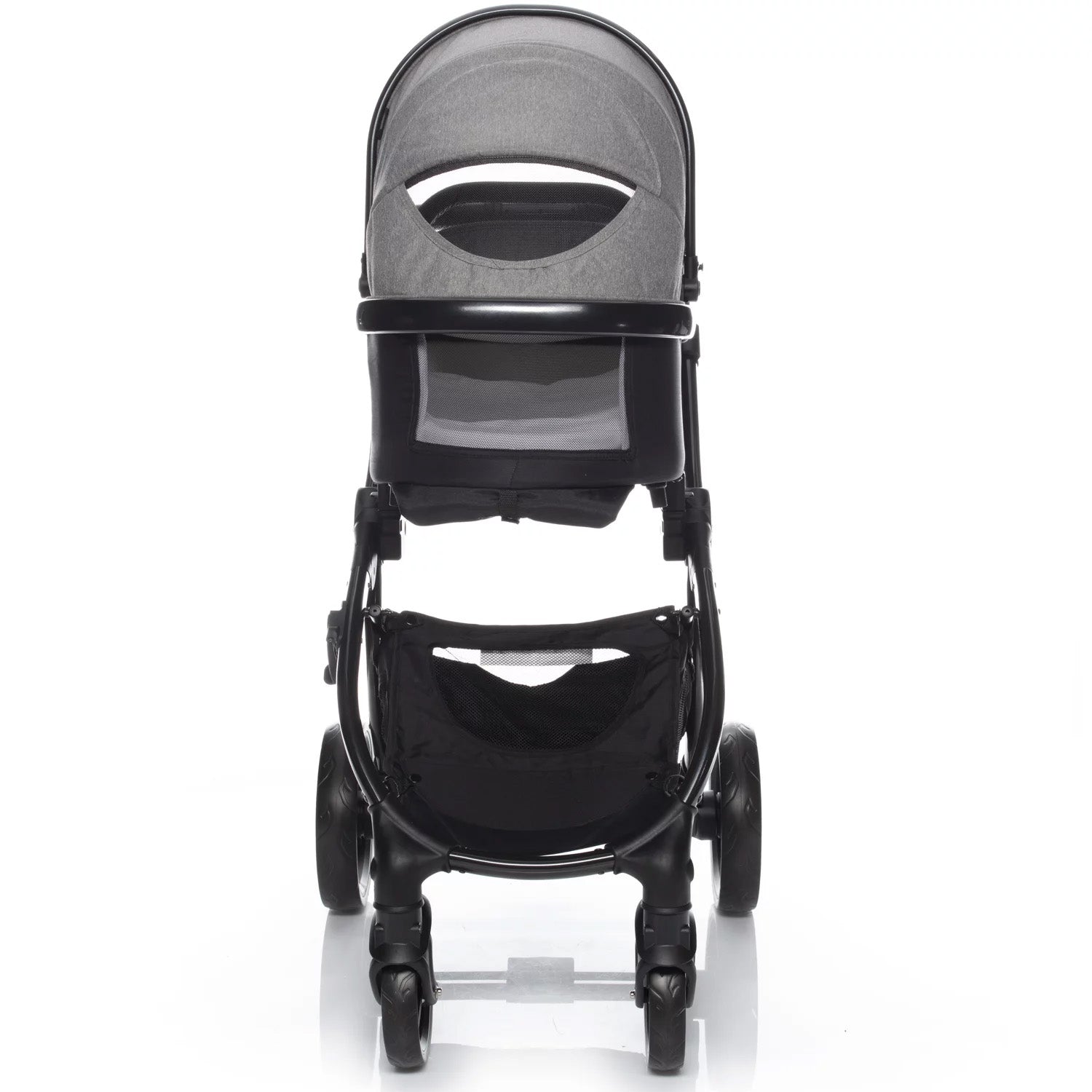 Das Gestell lässt sich leicht zusammenklappen und steht im gefalteten Zustand selbstständig. Das lange Verdeck mit Belüftungsöffnungen ist in der Höhe verstellbar und wächst so mit dem Kind mit. Im Set enthalten sind auch Maxi-Cosi-Adapter, mit denen sich eine Babyschale direkt auf dem Gestell befestigen lässt. Der geräumige Korb verfügt über eine magnetische Erweiterung.