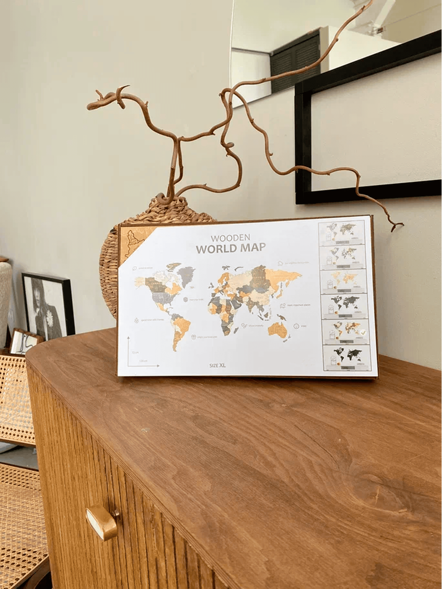 Die Weltkarte von BusyKids ist ein stilvolles und lehrreiches Dekorationselement, das jedes Kinderzimmer verschönert und Lernen in eine spannende Entdeckungsreise verwandelt. Aus natürlichem Holz gefertigt, wirkt die Karte modern, warm und umweltfreundlich und schafft eine Atmosphäre von Gemütlichkeit und Inspiration.