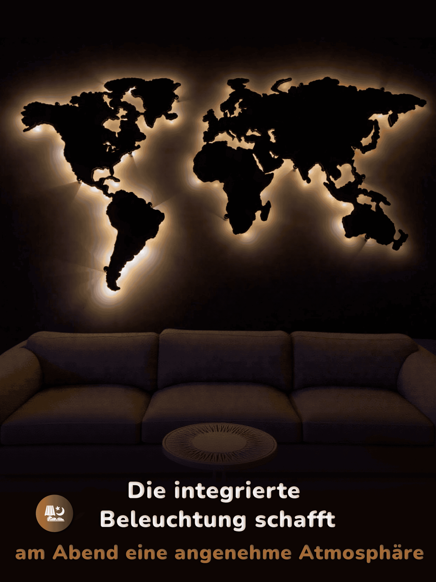 Die integrierte Nachtbeleuchtung sorgt für ein sanftes, warmes Licht und schafft am Abend eine gemütliche und beruhigende Atmosphäre. Dadurch wird die Karte nicht nur zu einem Lernmittel, sondern auch zu einem schönen dekorativen Highlight, das Kindern und Eltern gleichermaßen gefällt.