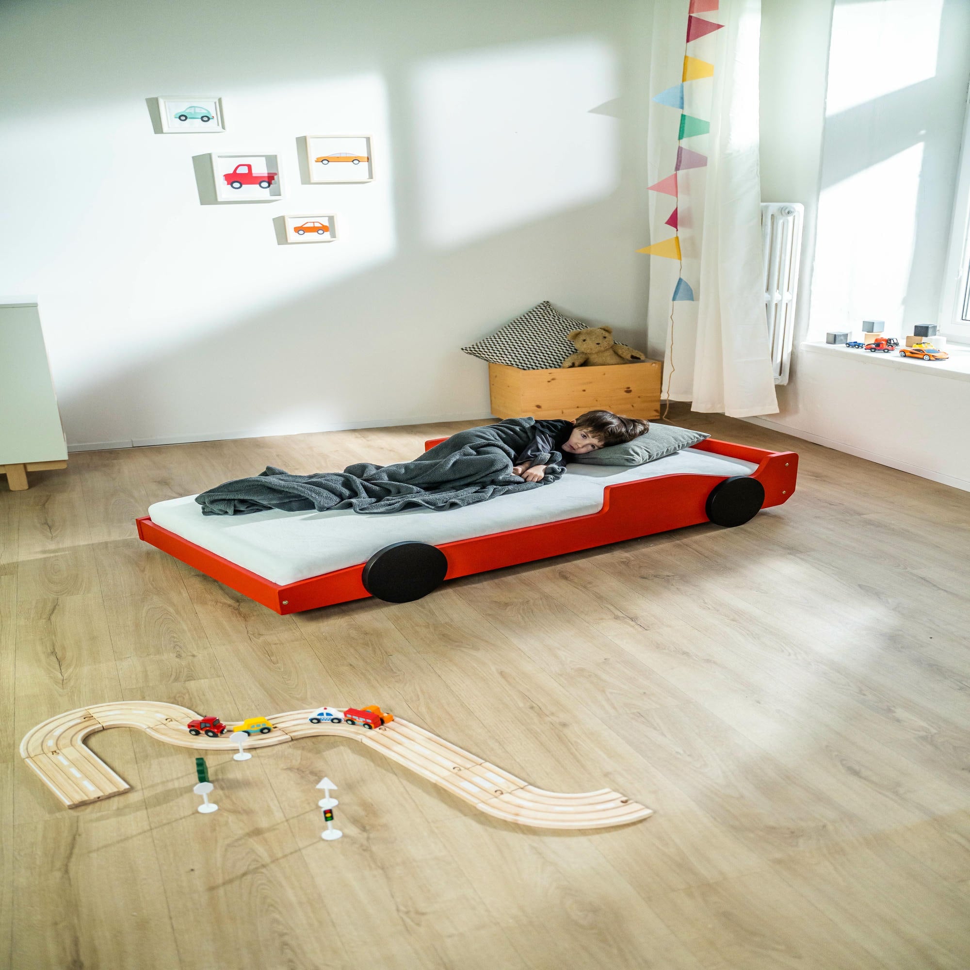 Das BusyKids Kinderbett TURBO vereint Komfort, Sicherheit und ein beeindruckendes Design und schenkt dem Kind Freude sowie das Gefühl echter Rennabenteuer.