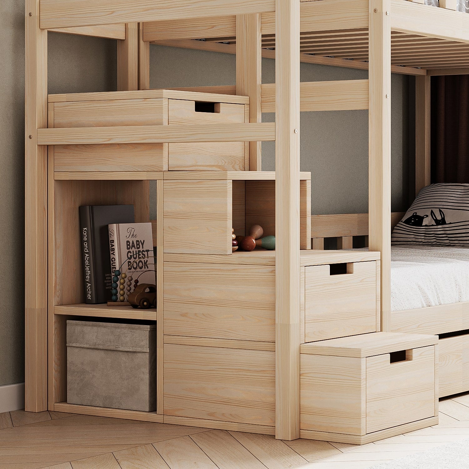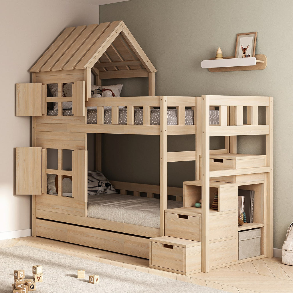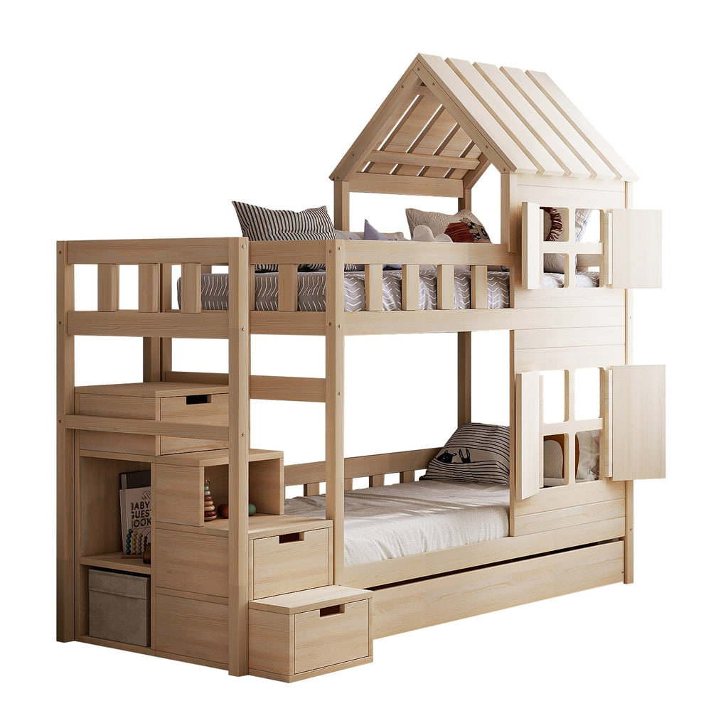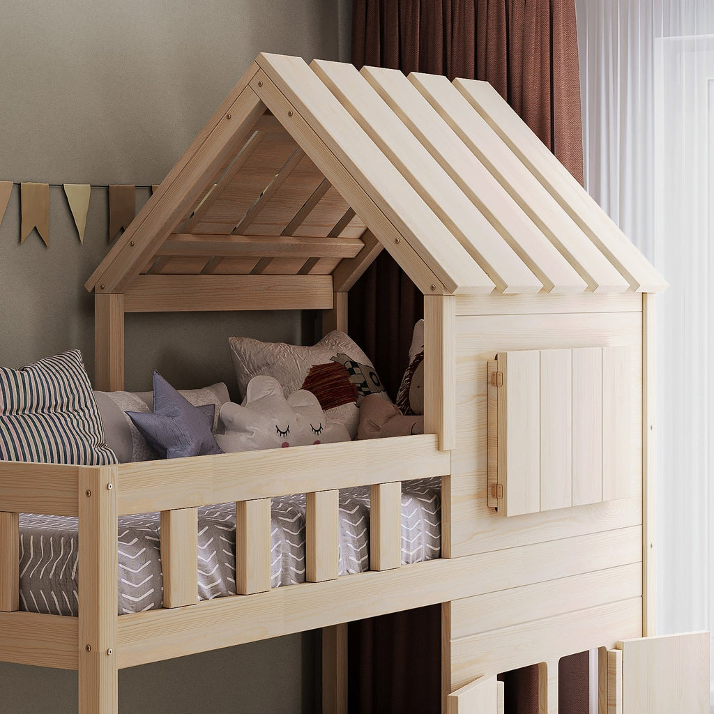 Schaffen Sie ein zauberhaftes Kinderzimmer für zwei – das BusyKids DREAM-HOUSE Bett vereint Funktionalität, Stil und Komfort. Der Rahmen besteht aus hochwertigem Massivholz mit einer umweltfreundlichen Beschichtung und ist so verarbeitet, dass er für Kinder absolut sicher ist. Das obere Bett verfügt über einen zuverlässigen Fallschutz, während die seitliche Treppe den Kindern ein leichtes und sicheres Hinaufsteigen ermöglicht. Unter der oberen Liegefläche befinden sich geräumige Schubladen, die helfen, Ordnung zu halten und den Platz optimal zu nutzen.