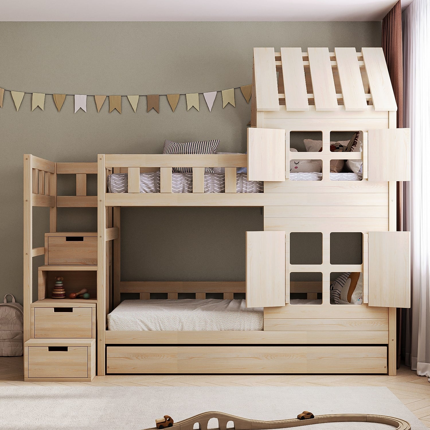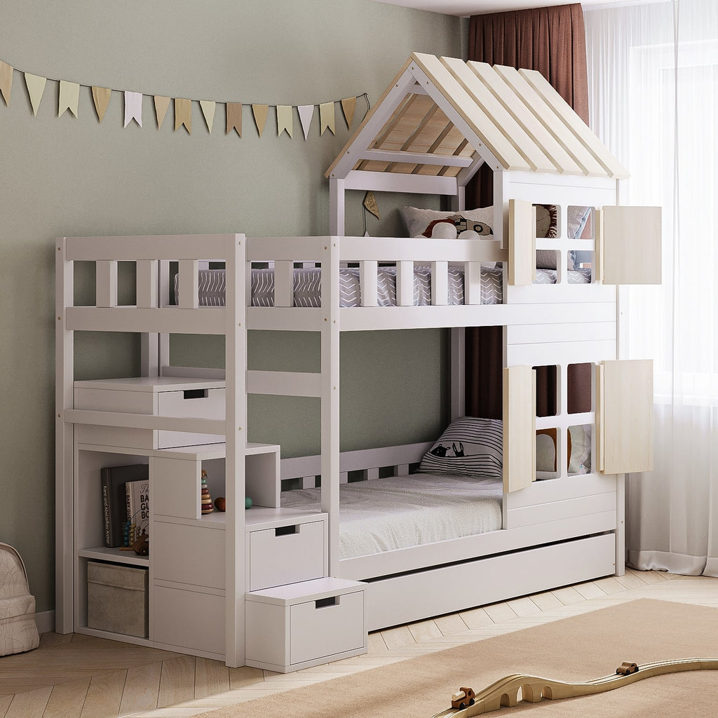 BusyKids Etagenbett DREAM-HOUSE mit Treppe und Stauraum 200x90 cm