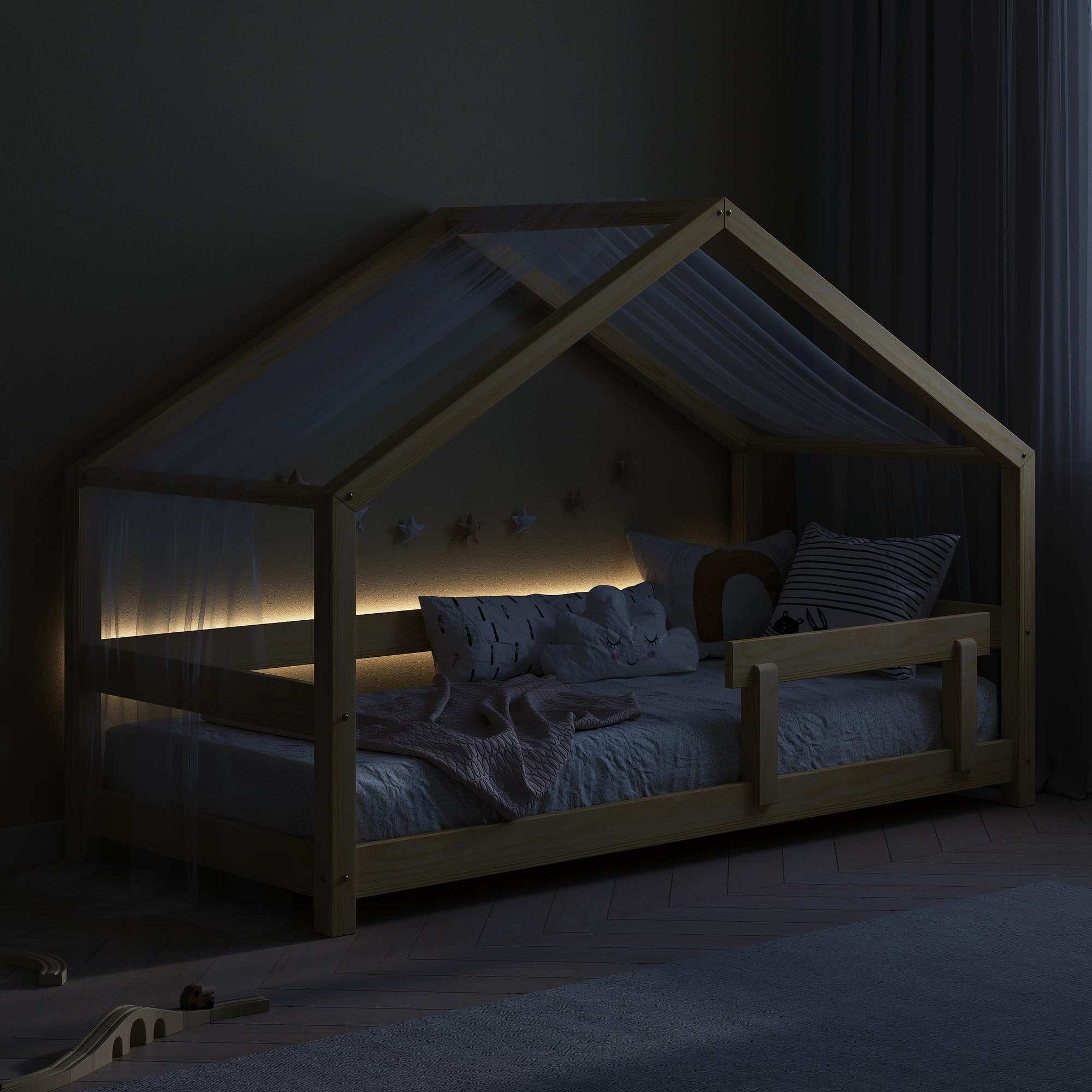 Das Modell ist auf eine lange Lebensdauer ausgelegt: Die stabile Konstruktion trägt bis zu 120 kg, sodass sich Eltern bequem neben ihrem Kind niederlassen können, um abends Geschichten zu erzählen und zu kuscheln. Es ist ideal für Kinder ab 3 Jahren. Das Bett wird in einer praktischen Verpackung geliefert und lässt sich dank der beiliegenden Anleitung leicht zusammenbauen.