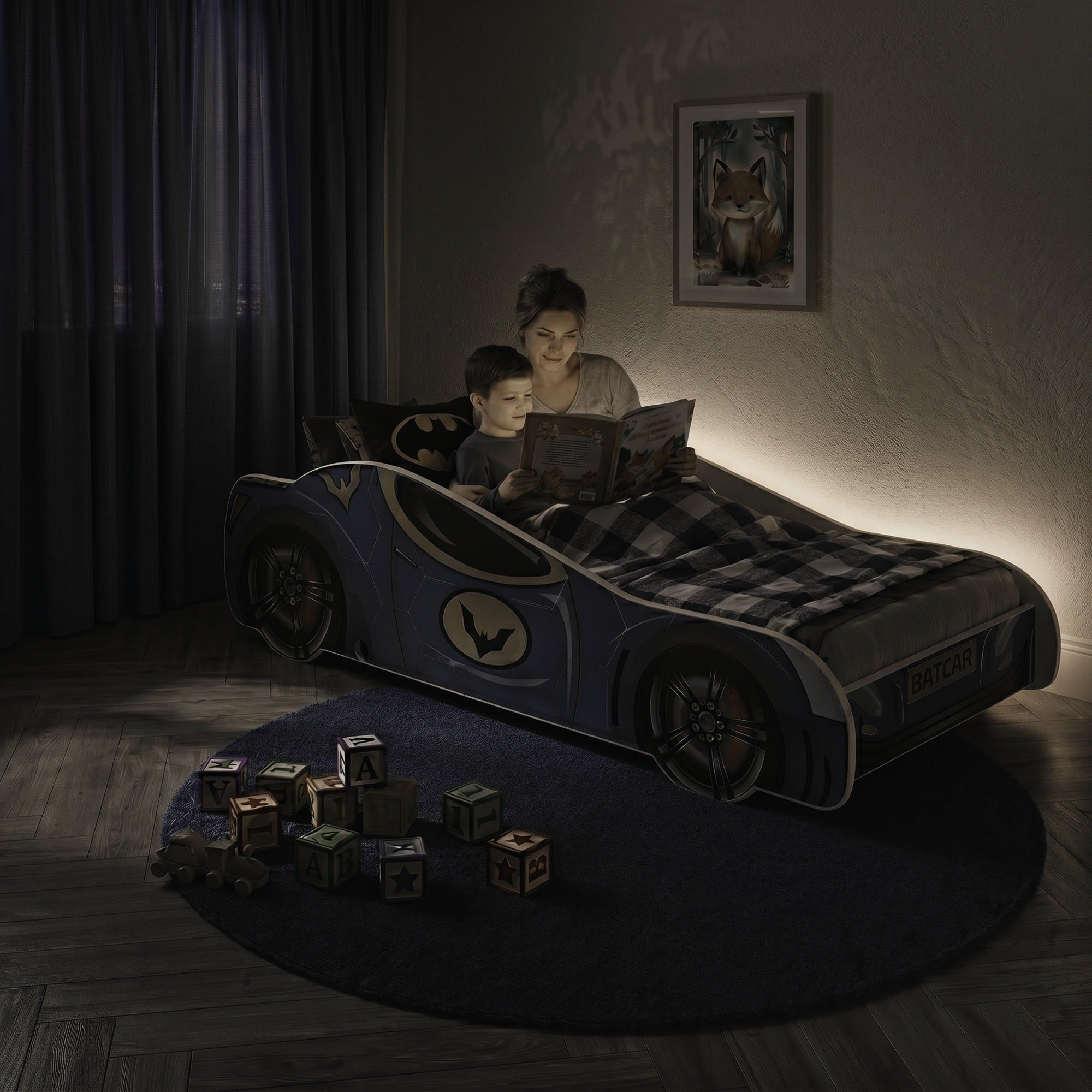 Das Kinderbett AUTO ist ein originelles Modell in Autoform, das ein auffälliges Design, Komfort und Sicherheit vereint. Der stabile Korpus besteht aus laminierter Möbelplatte, und der widerstandsfähige UV-Druck ist durch ein Laminat vor Abrieb und Ausbleichen geschützt. Abgerundete Kanten mit PVC- und Gummiumrandung verringern das Verletzungsrisiko, während die optimale Höhe der Seitenschutzleisten zusätzlichen Schutz beim Schlafen bietet. Im Set enthalten sind ein FLEX-Lattenrost aus Birkenleisten sowie eine bequeme Schaumstoffmatratze. Dank seines sportlichen Designs wird das Bett zu einem besonderen Blickfang im Kinderzimmer und gefällt Kindern, die Autos, Dynamik und außergewöhnliche Lösungen lieben.