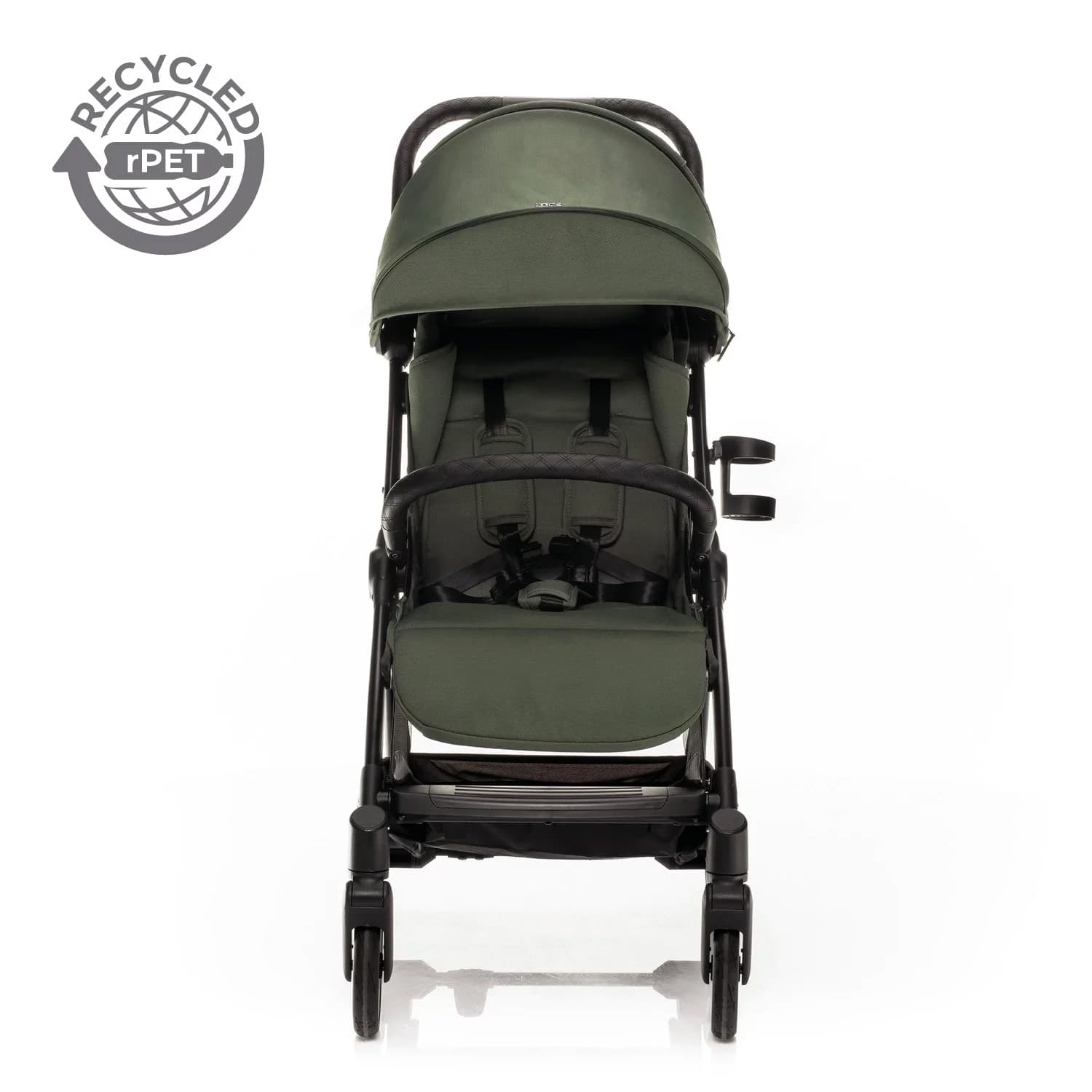 Leichte Konstruktion, verstellbare Rückenlehne und Fußstütze, verlängerbares Verdeck mit Belüftungsfenstern, 5-Punkt-Gurt mit Magnetverschluss, Fußbremse, gefederte Gummiräder, abklappbare Frontstange, EKO-Materialien.