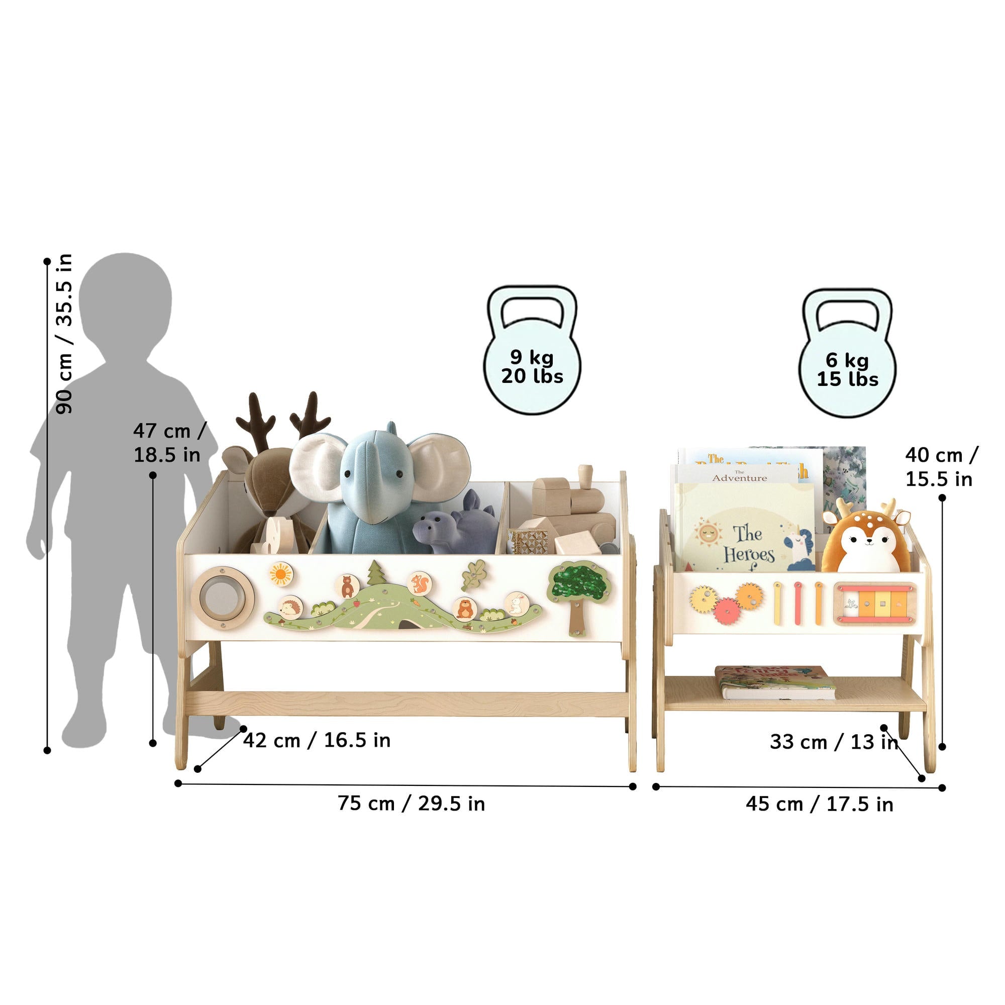Spielzeugregal / Tisch + Bücherregal / Stuhl LILU