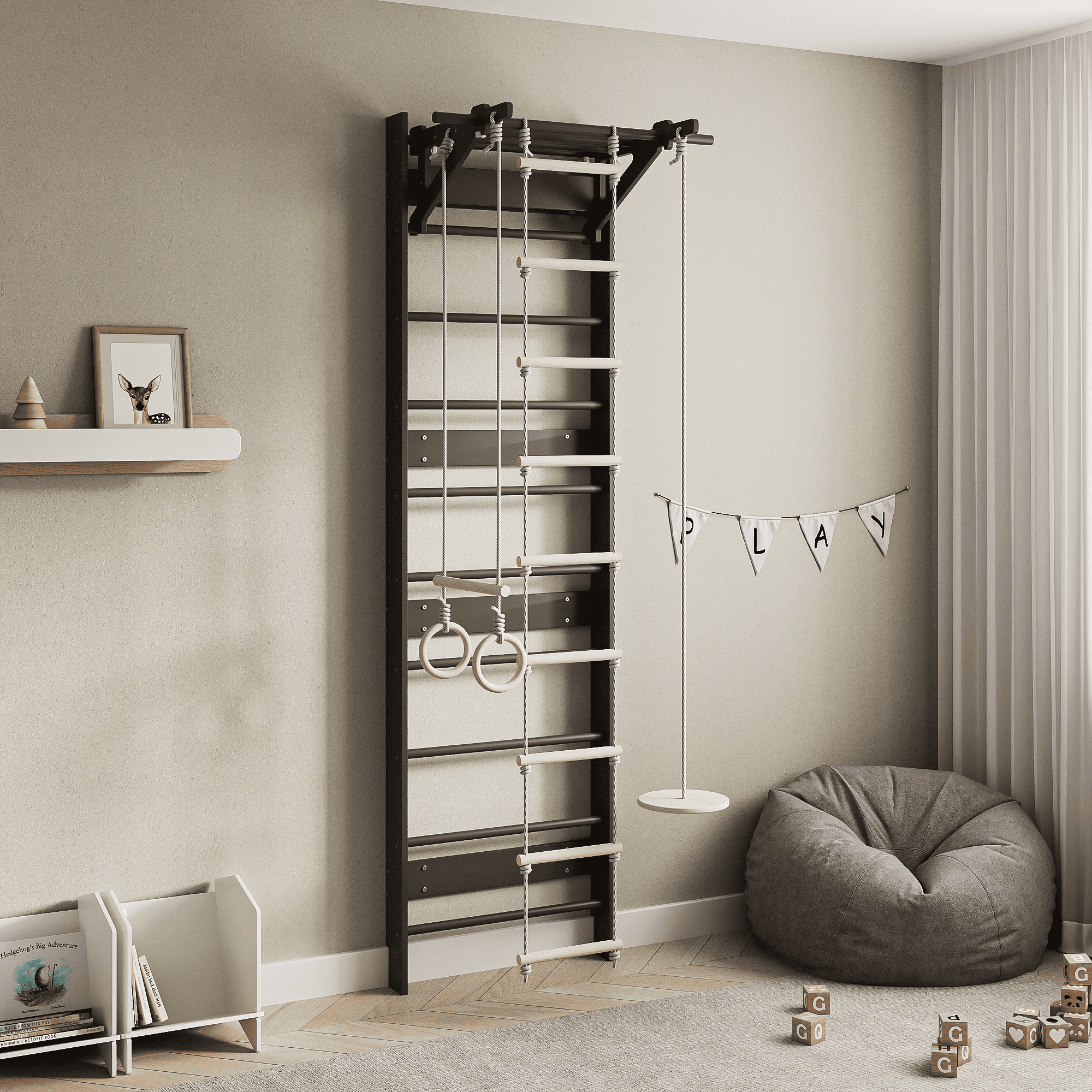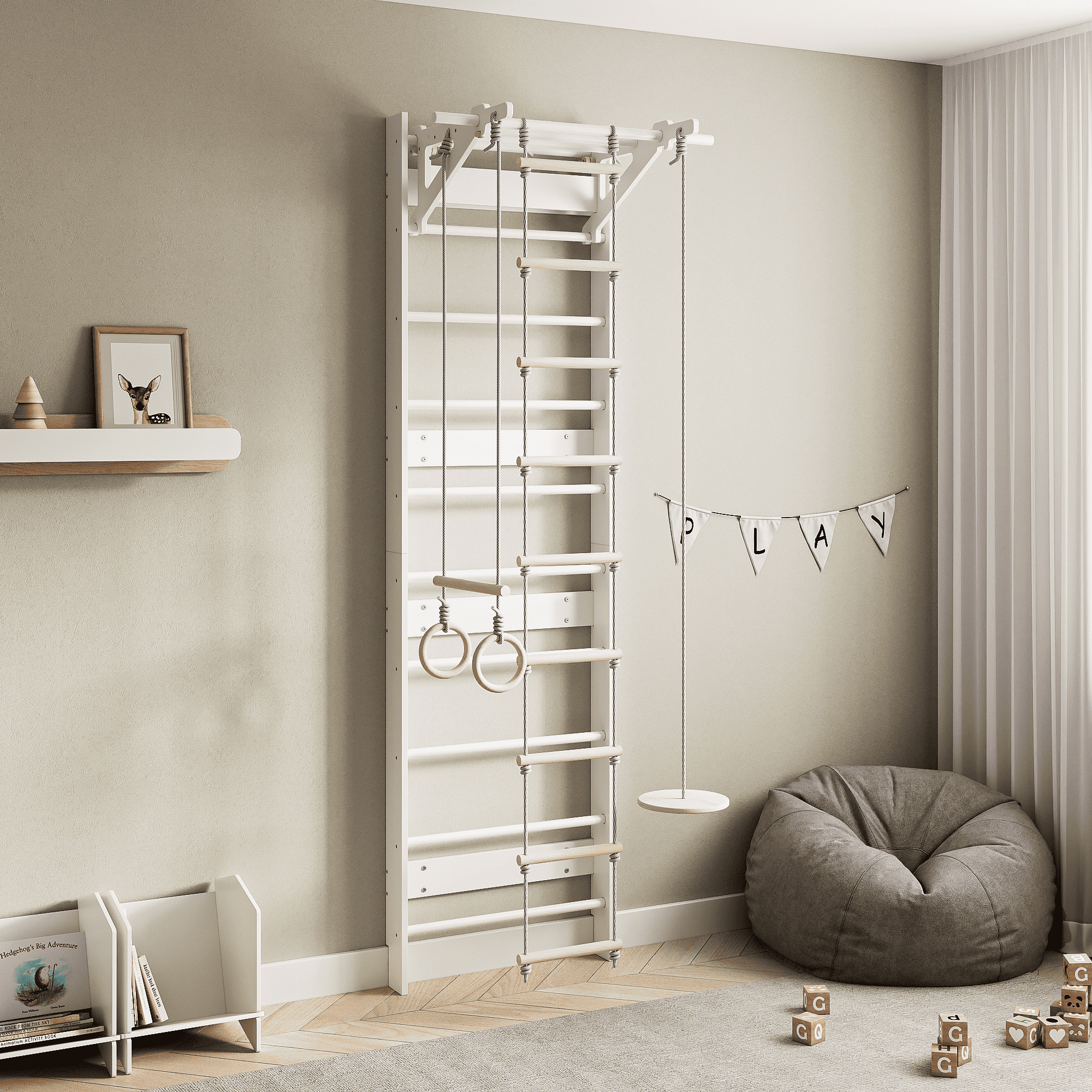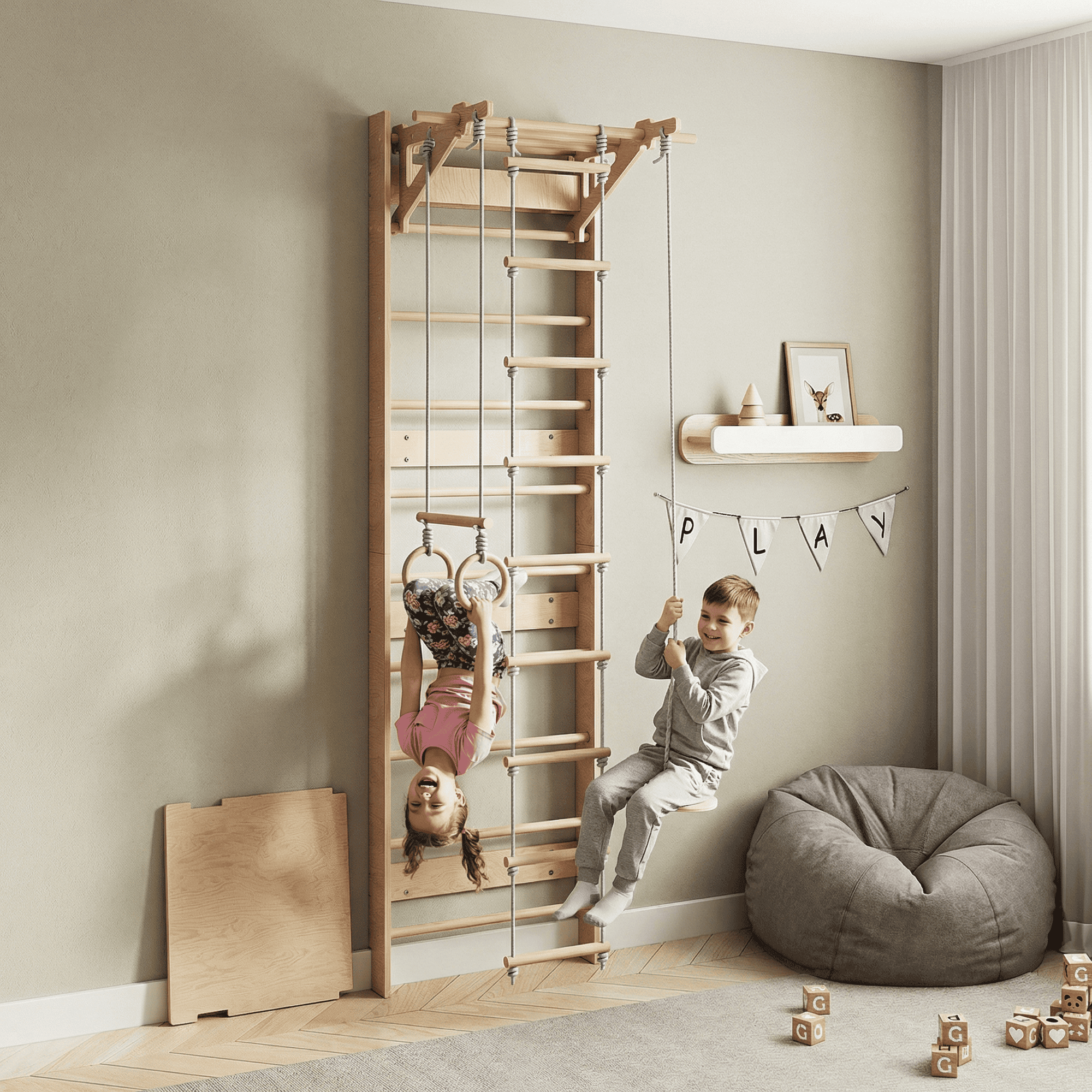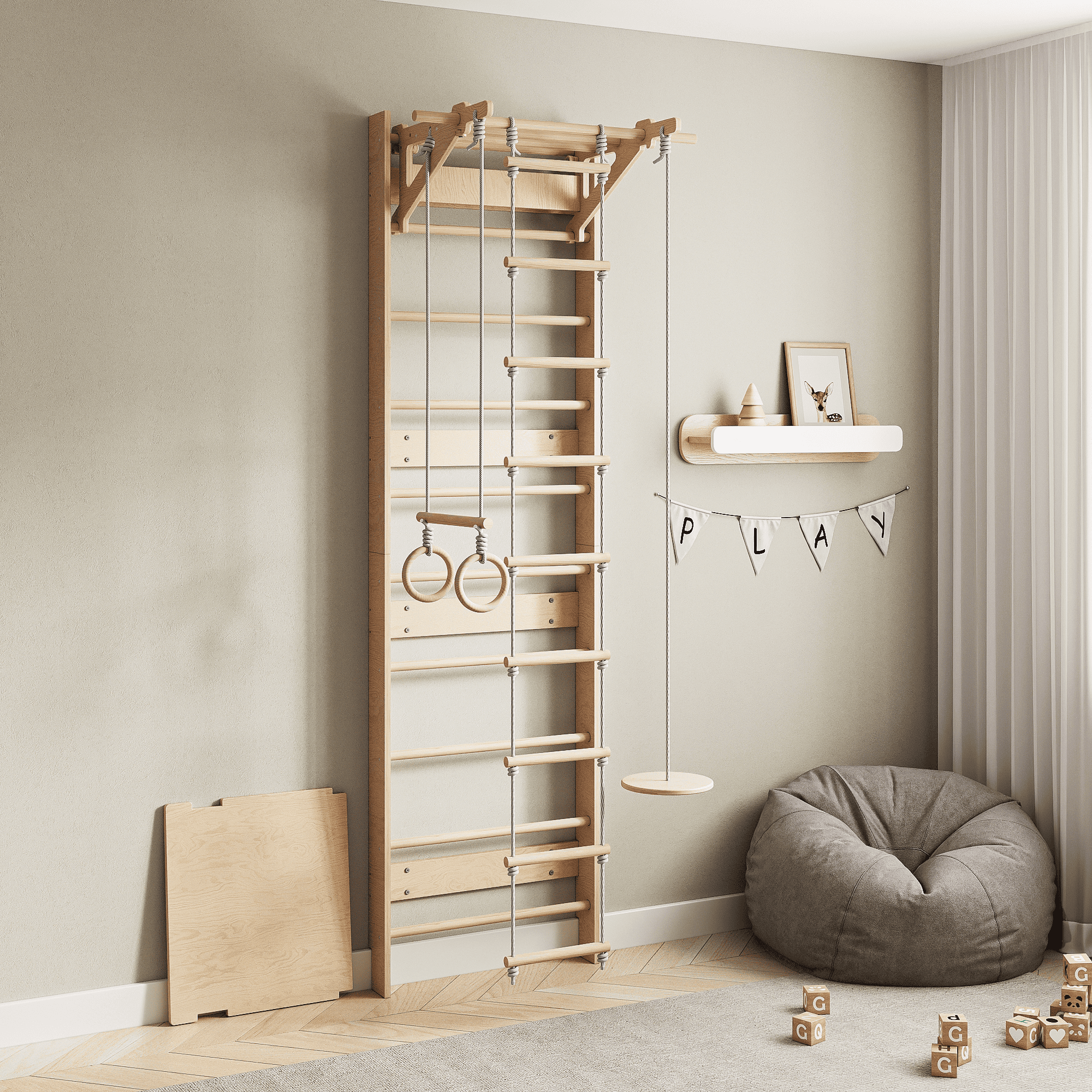 EVERGYM MAX ist mehr als eine Sprossenwand – es ist ein multifunktionales Zentrum für Ihr Kind. Dieses Set enthält alles, was das Herz begehrt, und spart dabei Platz im Kinderzimmer.
